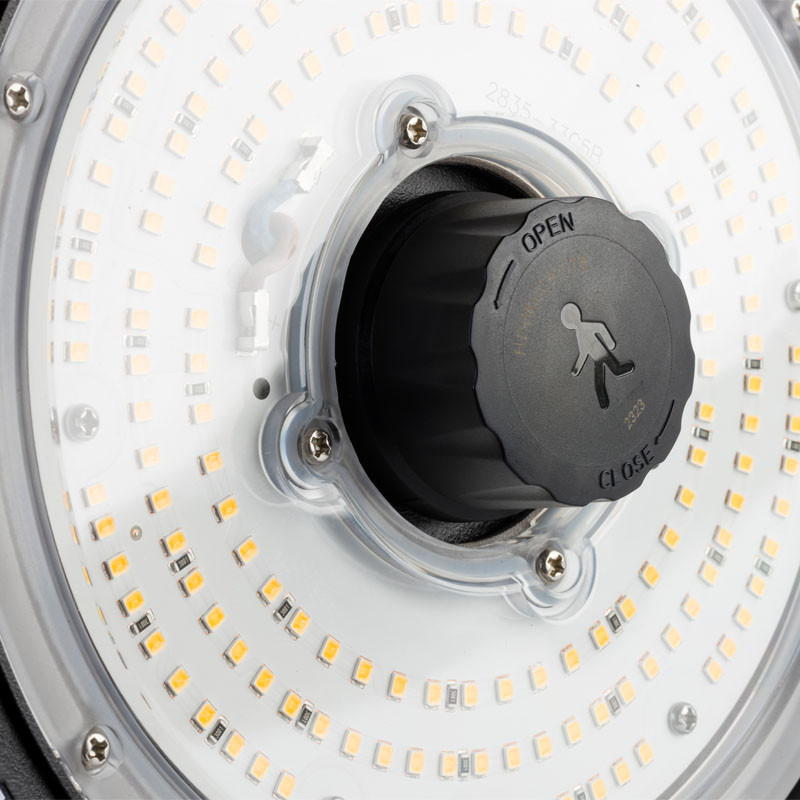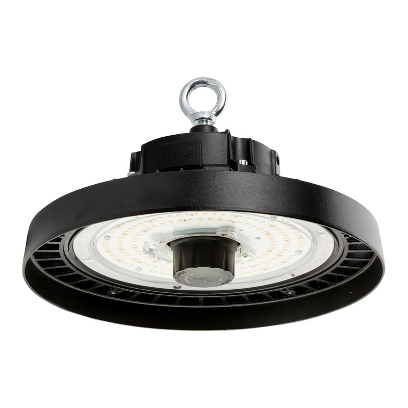Armature industrielle GOLDO III 0-10V - Multi-puissance 120-160-200W - 19200-25600-32000lm - 4000K - IP65-IK10 - 120° - Ø347x150mm - Réceptacle pour détecteur HF ZHAGA 18